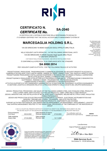 Marcegaglia Oskar ha inoltre ottenuto la certificazione SA8000, standard internazionale di riferimento in materia di responsabilità sociale. Questo importante traguardo conferma l’impegno concreto dell’azienda nell’adottare pratiche aziendali etiche e trasparenti, nel rispetto dei diritti delle persone, della valorizzazione delle diversità e del benessere dei lavoratori.
